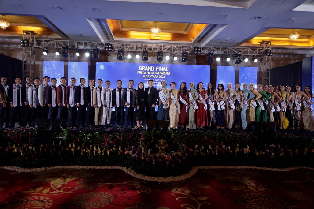 Finalis Putra Putri Pariwisata Nusantara 2023 yang masuk 10 besar tampak elegan dan ayu dengan busana karya  desainer ternama Edhy Gracia saat malam grand final yang dilangsungkan di Redtop Hotel & Convention Center, Pecenongan, Jakarta Pusat, Sabtu (29/07/2023).