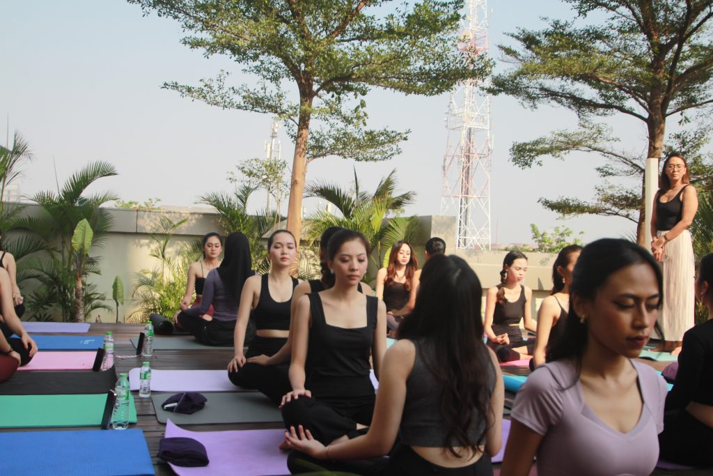 Putri Pariwisata Indonesia 2008 Albertina Fransisca Mailoa melakukan yoga bersama seluruh finalis Putri Pariwisata Indonesia 2023 di Permata Hijau Suites pada Rabu (13/9/2023).