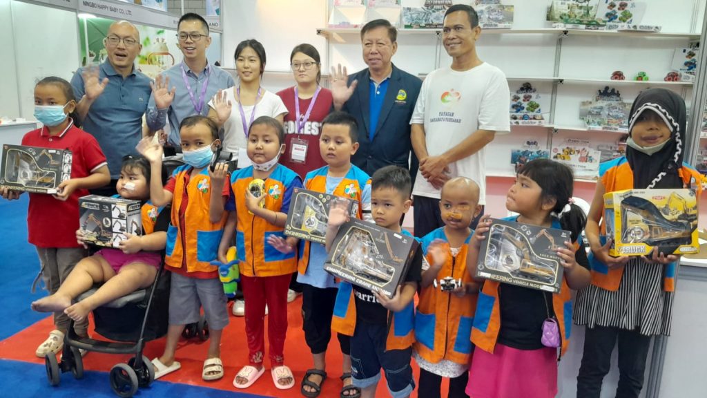 Indonesia IBTE 2023 tak sekedar sebagai ajang untuk berbisnis namun dibalik itu, ada kegiatan peduli kasih yang dilakukan AMI, yakni berupa pemberian bingkisan mainan kepada puluhan anak penderita kanker. Mainan yang diberikan disesuaikan dengan pilihan si anak.