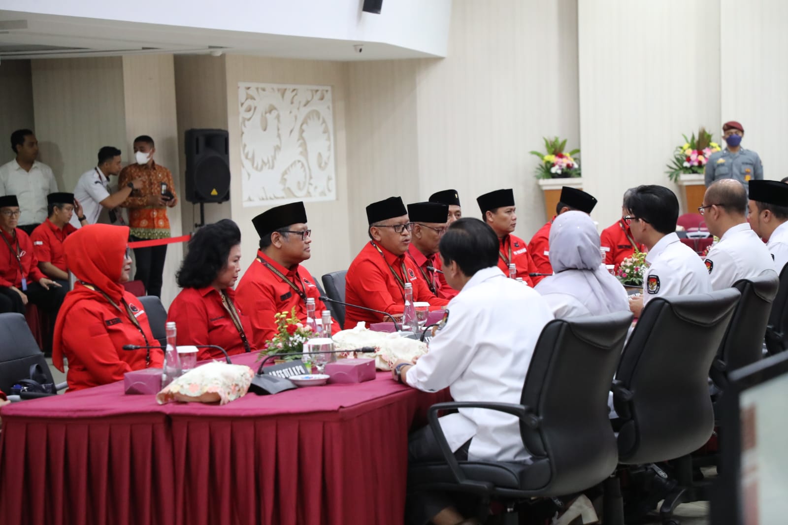 “Kami juga menyampaikan salam dari mba Puan Maharani Ketia DPP sekaligus Ketua DPR RI beliau juga menujukan komitmennya agar penyelenggaraan pemilu berjalan dengan baik demokratis tentu saja dukungan sangat penting terhadap politik anggaran demi kelancaran seleuruh tugas dari lembaga penyelenggara pemilu,” katanya.