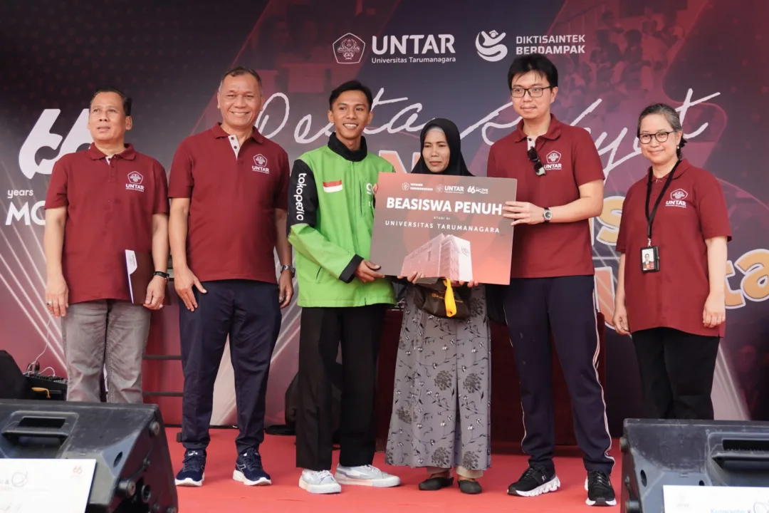 Salah satu momen yang mengharukan dalam perayaan tersebut adalah penyerahan beasiswa penuh secara resmi kepada Restu Anbia Putra, seorang pengemudi ojek online yang mendapatkan dukungan pendidikan dari Untar. Beasiswa tersebut diserahkan langsung oleh Rektor Untar, Ketua Yayasan, dan Kepala LLDIKTI Wilayah III. Penyerahan beasiswa ini menjadi bukti nyata kepedulian kampus terhadap pendidikan inklusif.