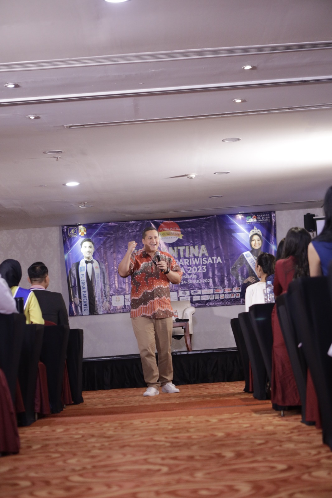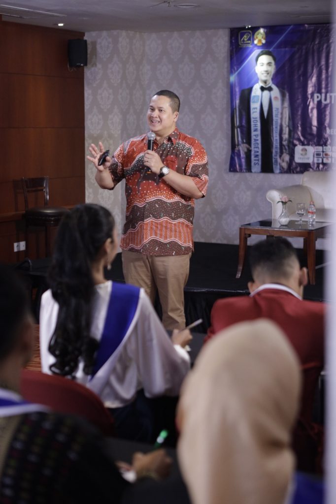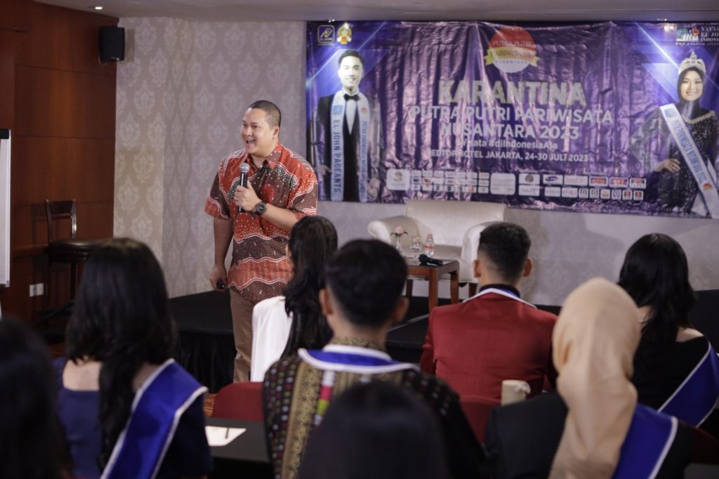 Ketua Umum IPSA (Indonesian Professional Speaker Association), Donny De Keizer, membagikan pembekalan kepada seluruh finalis Putra Putri Pariwisata Nusantara 2023 yang diadakan di Redtop Hotel & Convention Center pada Selasa (25/7/2023). Di hadapan seluruh finalis, pria yang akrab disapa Donny ini memberikan segudang ilmu mengenai public speaking.