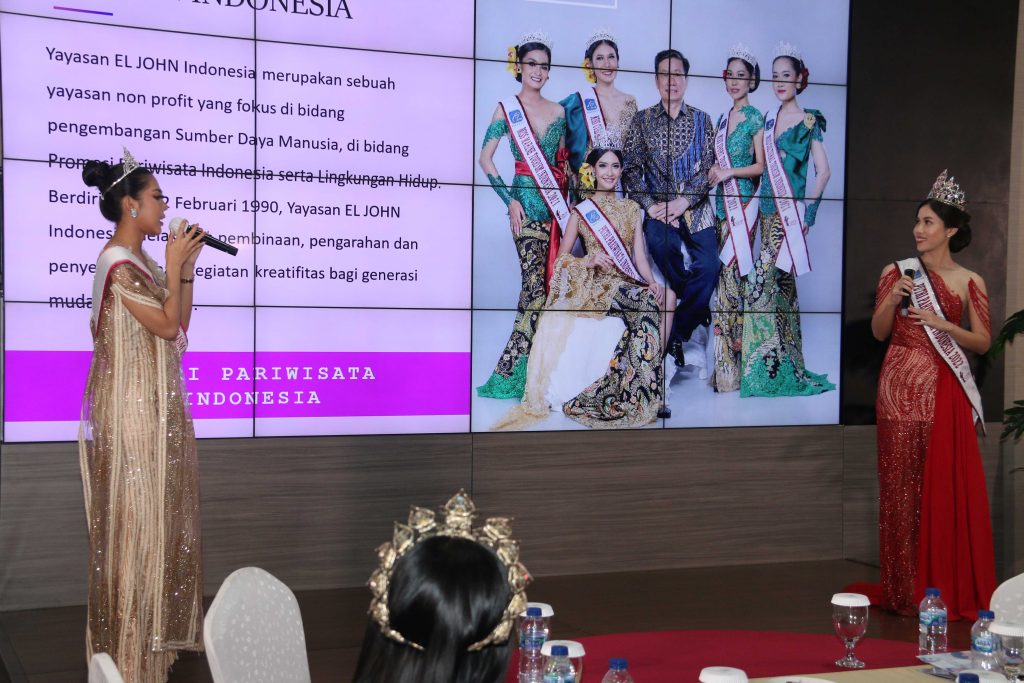 Para putri yang memperkenalkan keempat event besar Yayasan EL JOHN Indonesia yakni Tania Saputra (Putri Pariwisata Indonesia 2022) dan Dita Zulaika (Miss Tourism Indonesia 2021) yang mempresentasikan event Putri Pariwisata Indonesia. Kemudian, Chelia Dhema (Putri Pariwisata Nusantara 2022) dan Nur Afrah Maryam Insani (Putri Anti Narkoba Indonesia 2021) yang memaparkan event Putra Putri Pariwisata Nusantara.