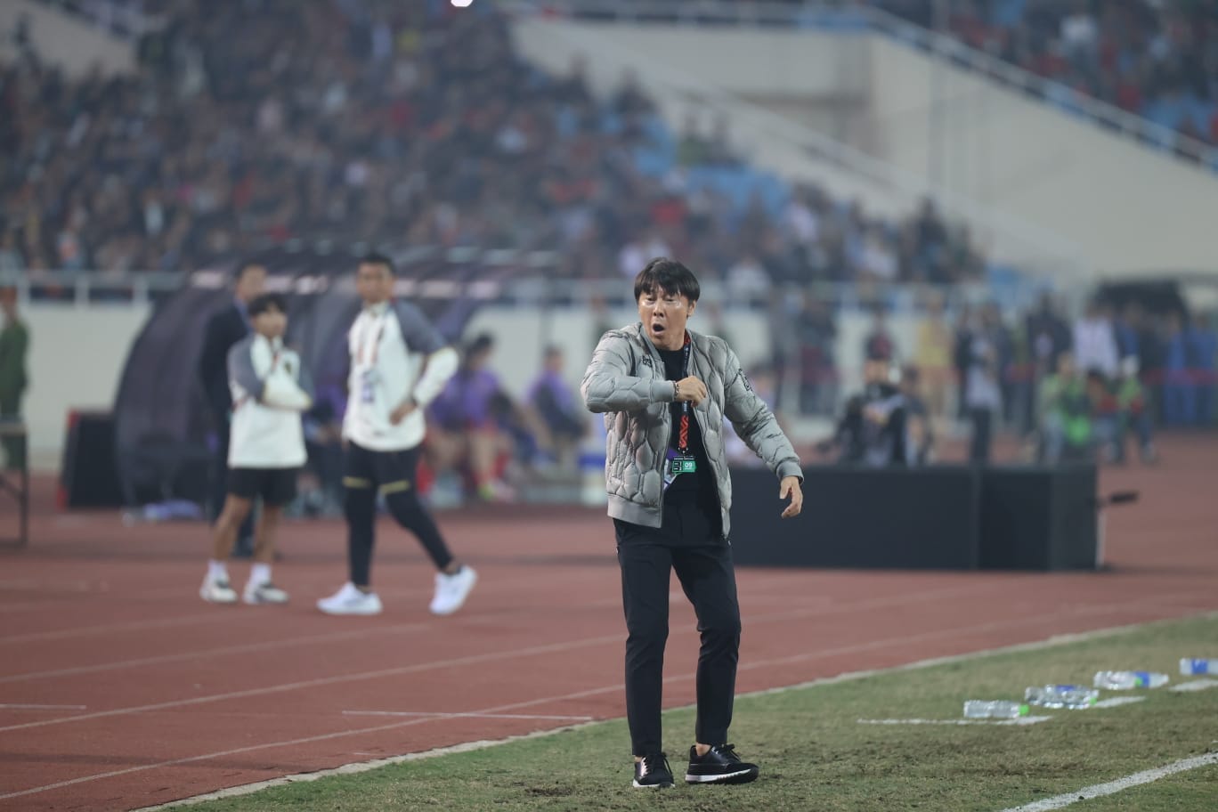 Pelatih asal Korea Selatan itu menilai para pemainnya belum terbiasa dengan kualitas lapangan Stadion My Dinh yang dinilai tidak sebaik di SUGBK. Ini menyebabkan Skuat Garuda kesulitan mengembangkan permainan.