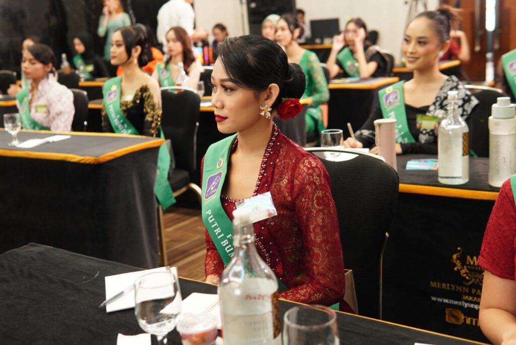 Koordinator Nasional Penjaga Laut Erwin Falufi Irianti memberikan berbagai pengetahuan kepada para finalis Putri Bumi Indonesia 2024 terkait peran anak muda dalam pengelolaan sampah plastik. Pembekalan tersebut dilangsungkan di Merlynn Park Hotel, Jakarta, Minggu (21/4/2024).