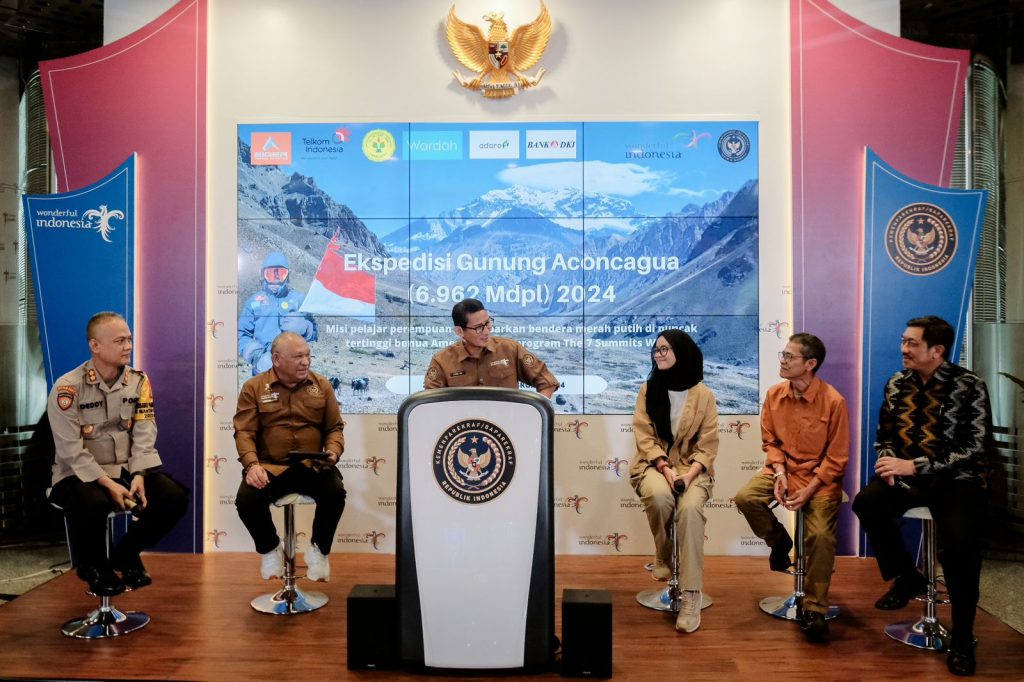 Kementerian Pariwisata dan Ekonomi Kreatif/Badan Pariwisata dan Ekonomi Kreatif (Menparekraf/Kabaparekraf) mendukung misi pendakian yang akan dijalankan Khansa Syahlaa, siswa kelas XII SMA Labschool Rawamangun, Jakarta Timur di Gunung Aconcagua, Argentina pada 20 Januari – 13 Februari 2024.