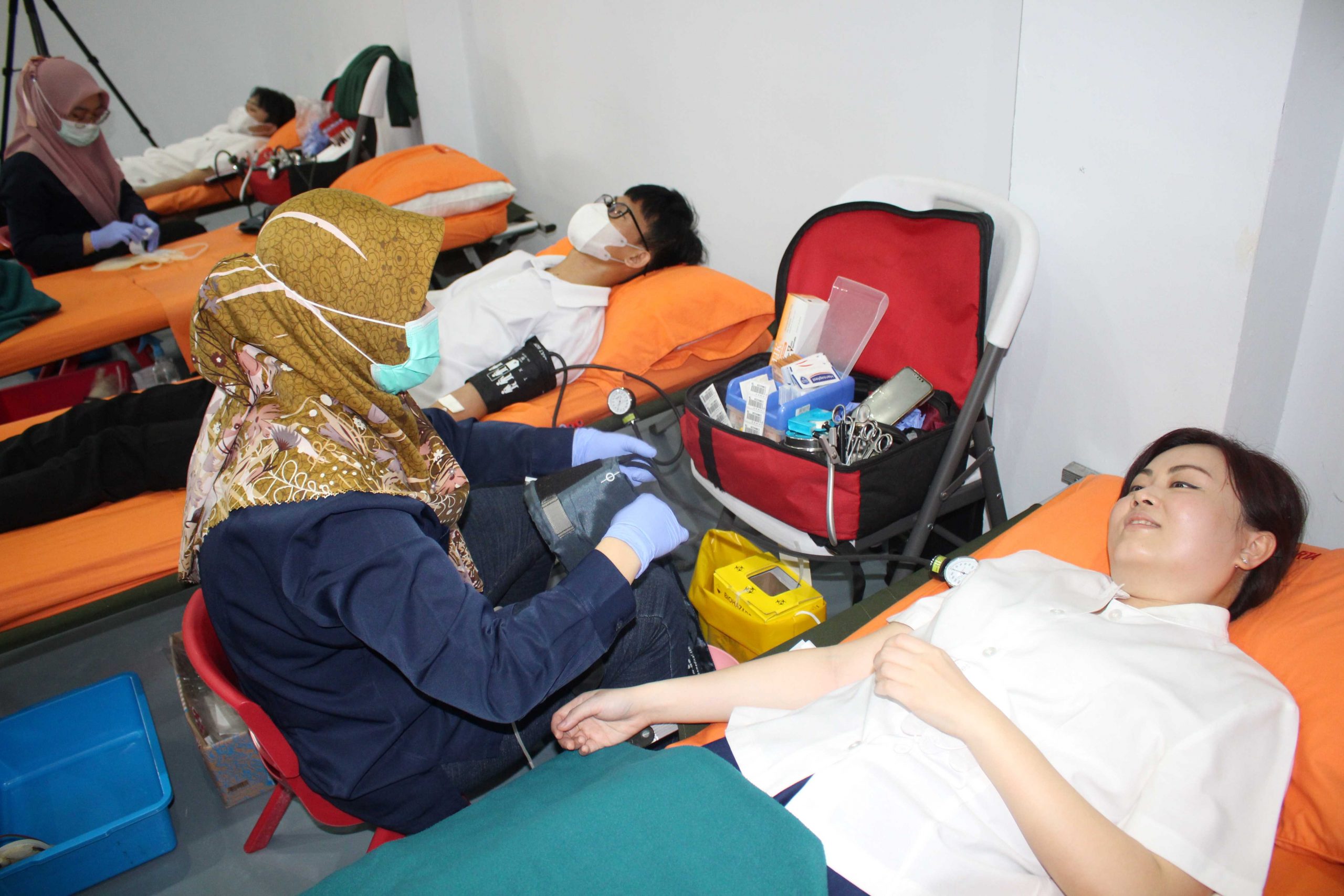 Kemudian setelah itu, dilakukan pemeriksaan Kesehatan seperti pemeriksaan kadar haemoglobin darah, pemeriksaan golongan darah bagi pendonor pemula dan pemeriksaan tekanan darah. Bahkan, petugas Penanganan Prasarana dan Sarana Umum (PPSU) dan anggota organisasi ke masyarakat juga ikut menyumbangkan darahnya. Kali ini, pihak panitia menargetkan 300 kantong darah yang dikumpulkan dari para pendonor.