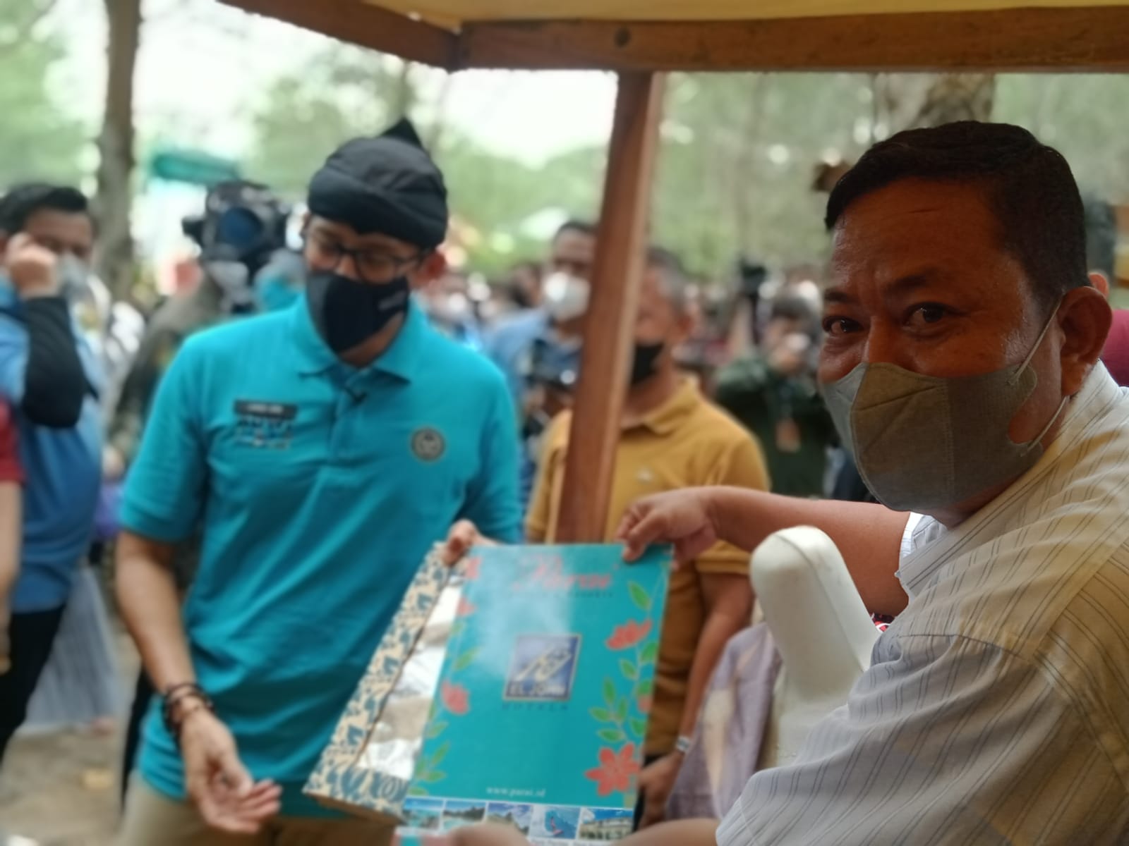 “Tadi saya melihat Bu Tuni menyiapkan sendiri dan membutuhkan bantuan kemasan, langsung saya eksekusi dan bantu secepatnya dengan tegas dan lugas melalui satu program kita yg namanya program BEDAKAN (Bedah Desain Kemasan Kuliner), untuk pemasaran dan pembiayaannya juga, jadi mudah-mudahan Ibu Tuni segera kita tangkap produk kreatifnya, dan harapannya ini menjadi peluang usaha yang akan membuka lapangan kerja,” ujar Sandiaga. Sementara itu, Bupati Pacitan, Indrata Nur Bayuaji, menyampaikan pihaknya akan menangkap peluang dari Kemenparekraf untuk mengembangkan desa wisata yang ada di Pacitan.