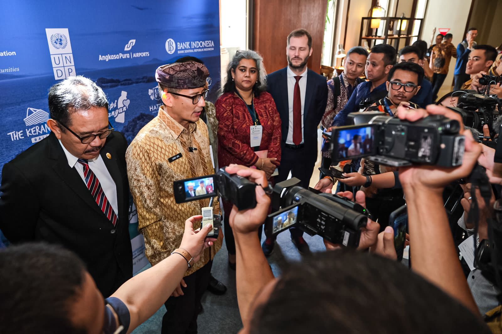 Turut hadir mendampingi Menparekraf Sandiaga, Wakil Menteri Pariwisata dan Ekonomi Kreatif/Wakil Kepala Badan Pariwisata dan Ekonomi Kreatif, Angela Tanoesoedibjo; Deputi Bidang Industri dan Investasi Kemenparekraf/Baparekraf, Rizki Handayani; serta Deputi Bidang Sumber Daya dan Kelembagaan Kemenparekraf/Baparekraf, Diah Martini Paham. (Sumber Kemenparekraf)
