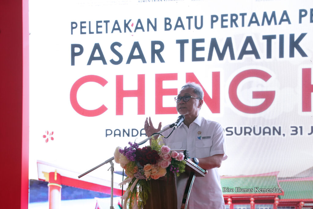 Menteri Perdagangan Zulkifli Hasan melakukan peletakan batu pertama revitalisasi Pasar Tematik Wisata Cheng Hoo di Kabupaten Pasuruan, Jawa Timur pada Rabu, (31/01/2024). Mendag meyakini, pembangunan Pasar Tematik Wisata Cheng Hoo akan mengembangkan potensi wisata dan meningkatkan perekonomian Jawa Timur, khususnya Kabupaten Pasuruan.
