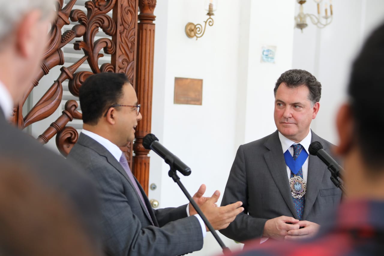 “Saya sangat senang menyambut Lord Mayor of the City of London di Jakarta dalam membahas bagaimana Indonesia bisa memanfaatkan status London sebagai pusat keuangan global untuk memaksimalkan pertumbuhan ekonomi Indonesia. Indonesia memiliki potensi yang sangat besar, dan dukungan dari London akan menjadi win-win bagi kedua negara. Banyaknya pakar yang akan beliau temui dalam program dua hari penuh ini merepresentasikan beragam hal yang bisa kita kerjakan. Semoga kunjungan ini bisa secepatnya memberikan hasil yang baik dari segala usaha yang kita lakukan bersama.” pungkas Ambassador Owen Jenkins. (Sumber PPID DKI Jakarta)