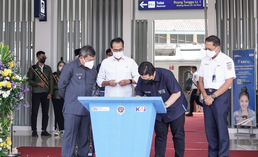 Turut hadir dalam peresmian Menteri Dirjen Perkeretaapian Zulfikri dan Dirut PT. KAI Didiek Hartantyo. (Sumber Kemenhub)