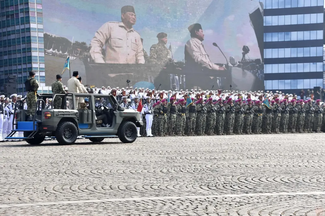 Rangkaian acara kemudian dilanjutkan dengan defile alutsista TNI, menampilkan 1.047 peralatan pertahanan modern mulai dari kendaraan taktis, artileri medan dan udara, drone, hingga kapal selam tanpa awak. Atraksi udara pesawat F-16 menjadi penutup yang spektakuler, menggetarkan langit Monas dan menegaskan kesiapan TNI menjaga kedaulatan Indonesia.