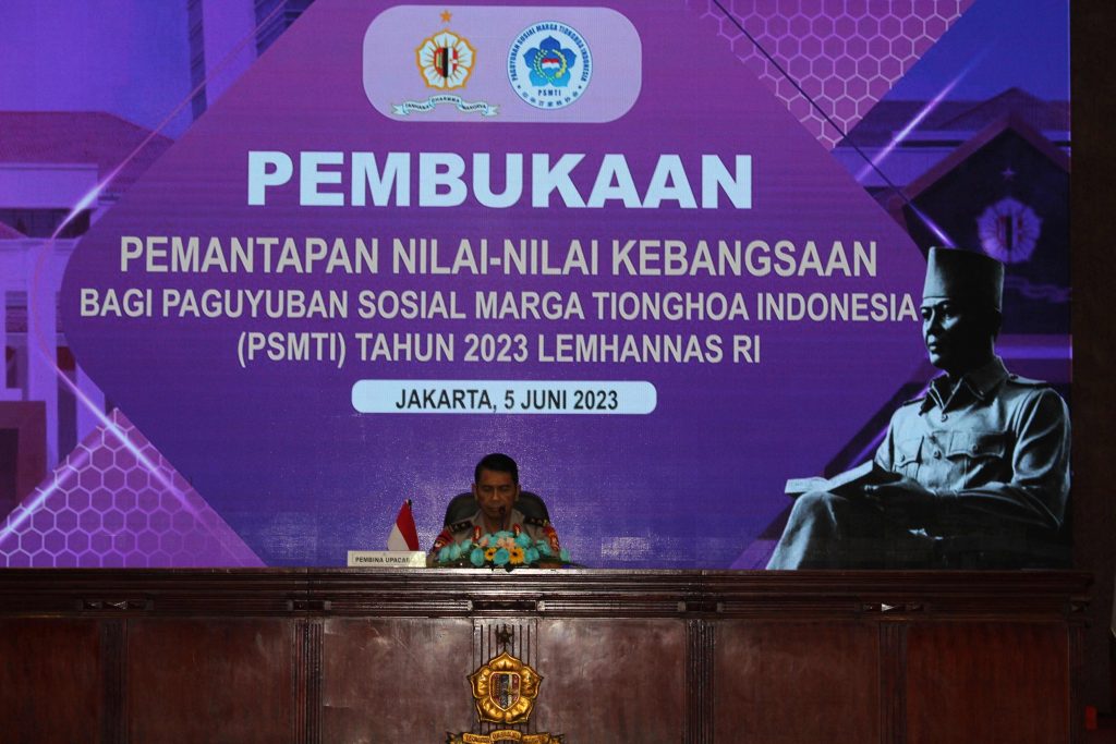 Lembaga Ketahanan Nasional (Lemhannas) RI menggelar pelatihan Pemantapan Nilai-Nilai Kebangsaan bagi Paguyuban Sosial Marga Tionghoa Indonesia (PSMTI) di gedung Lemhannas, Jakarta, Senin (05/06/2023). Kegiatan yang berlangsung selama tujuh hari ini, diikuti oleh 106 anggota PSMTI, yang terdiri dari pengurus pusat dan daerah di seluruh Indonesia, termasuk Ketua Umum PSMTI Wilianto Tanta.