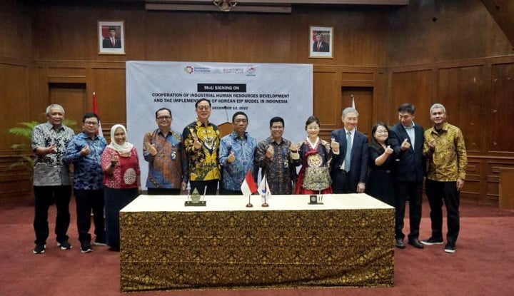 “Kerja sama ini juga terkait pengembangan sumber daya manusia (SDM) industri. Hal ini direalisasikan oleh Kementerian Perindustrian RI melalui penandatanganan Memorandum of Understanding (MoU) dengan Ulsan College dan Kocham di Indonesia,” kata Kepala Badan Pengembangan Sumber Daya Manusia Industri (BPSDMI) Arus Gunawan di Jakatta, Senin (12/12/2022).