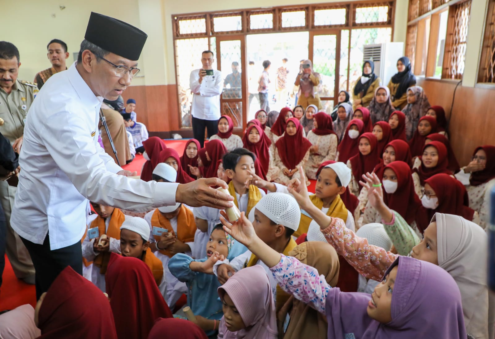 “Atas nama Pemprov saya mengucapkan terima kasih kepada seluruh anggota DPD REI yang terlibat dalam kegiatan berbagi ini, sekaligus telah memperhatikan anak-anak kita di sini. Ini sebuah kebanggaan bagi kita semua, melihat anak-anak kita mendapatkan kesempatan berupa bantuan yang sangat mereka butuhkan,” ujar Pj. Gubernur Heru.