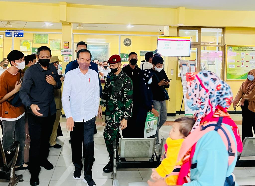 Presiden Joko Widodo meninjau aktivitas pelayanan BPJS Kesehatan di Rumah Sakit Umum Daerah (RSUD) Arifin Achmad, Kota Pekanbaru, Provinsi Riau, pada Rabu, (04/01/2023). Dalam keterangannya , Presiden menjelaskan bahwa kunjungannya ini, untuk memastikan pelayanan BPJS Kesehatan di rumah sakit berjalan baik.