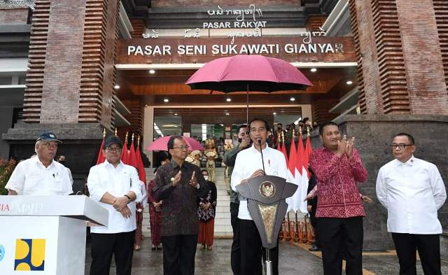 Presiden Joko Widodo menyampaikan apresiasi atas selesainya pembangunan Pasar Seni Sukawati yang terletak di Kabupaten Gianyar, Provinsi Bali. Pasar yang telah berdiri sejak tahun 1985 tersebut sempat mengalami kerusakan dan saat ini telah selesai dilakukan pembangunan.