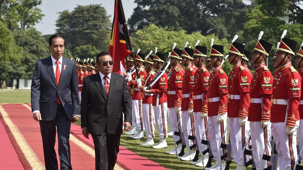 Kedatangan PM Taur Matan Ruak langsung disambut hangat oleh Presiden Jokowi yang telah menunggu di halaman depan Istana Kepresidenan Bogor. Setelah bersalaman, kedua pemimpin kemudian mengikuti prosesi upacara penyambutan resmi. Lagu kebangsaan dari kedua negara dikumandangkan dan diselingi dengan 19 dentuman meriam. Prosesi dilanjutkan dengan inspeksi pasukan.