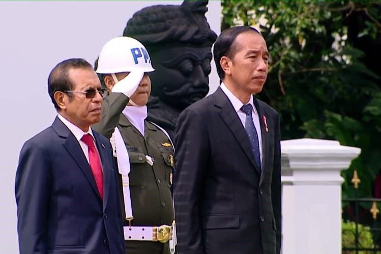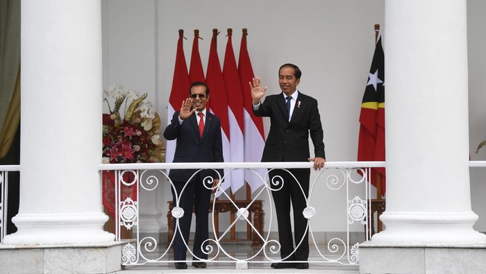 Presiden RI Joko Widodo (Jokowi) menerima kunjungan resmi Perdana Menteri (PM) Republik Demokratik Timor Leste Taur Matan Ruak, di Istana Kepresidenan Bogor, Jawa Barat, Senin (13/02/2023).