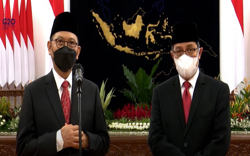 Turut hadir mendampingi Presiden dan Wakil Presiden dalam pelantikan antara lain Menteri Koordinator Bidang Politik, Hukum, dan Keamanan Mahfud MD, Menteri Sekretaris Negara Pratikno, Menteri Dalam Negeri Tito Karnavian, dan Sekretaris Kabinet Pramono Anung. (Sumber Setkab)