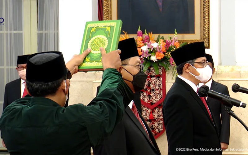 Keputusan ini dibacakan oleh Deputi Bidang Administrasi Aparatur Kementerian Sekretariat Negara Nanik Purwanti, kemudian dilanjutkan dengan pengambilan sumpah jabatan oleh Presiden Joko Widodo.