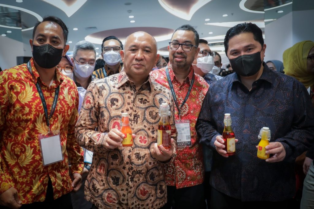 Usai membuka Indonesia Retail Summit 2022, Menteri BUMN, Menkop UKM, Kepala Badan Pangan dan Ketua Umum HIPPINDO berkunjung ke sejumlah gerai yang mempromosikan produk-produk UMKM lokal.
