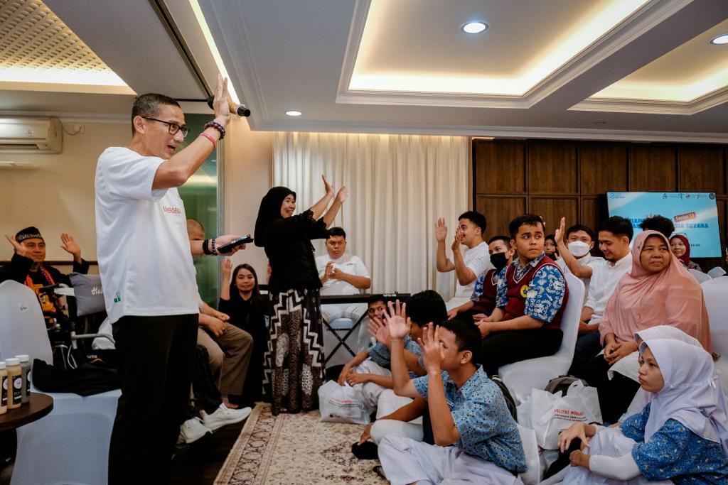 Sandiaga mengatakan ia telah berkolaborasi ke berbagai pihak mulai dari instansi pemerintahan hingga mitra-mitra lainnya. Hal ini untuk membuka kesempatan kerja dan menghindari kesenjangan untuk anak-anak muda penyandang disabilitas.