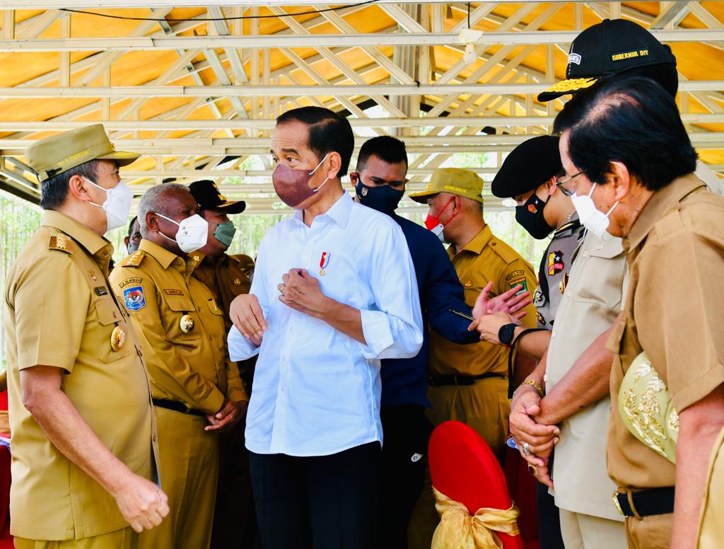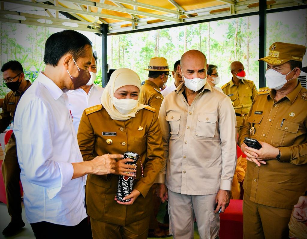 Para perwakilan provinsi dari seluruh Tanah Air hadir mengikuti prosesi penyatuan tanah dan air secara simbolis bersama Presiden RI Joko Widodo (Jokowi) di Kawasan Titik Nol Kilometer Ibu Kota Nusantara (IKN), Kabupaten Penajam Paser Utara, Senin (14/03/2022). Pada kesempatan tersebut, sejumlah gubernur menyampaikan kesan dan harapannya terhadap pembangunan IKN.