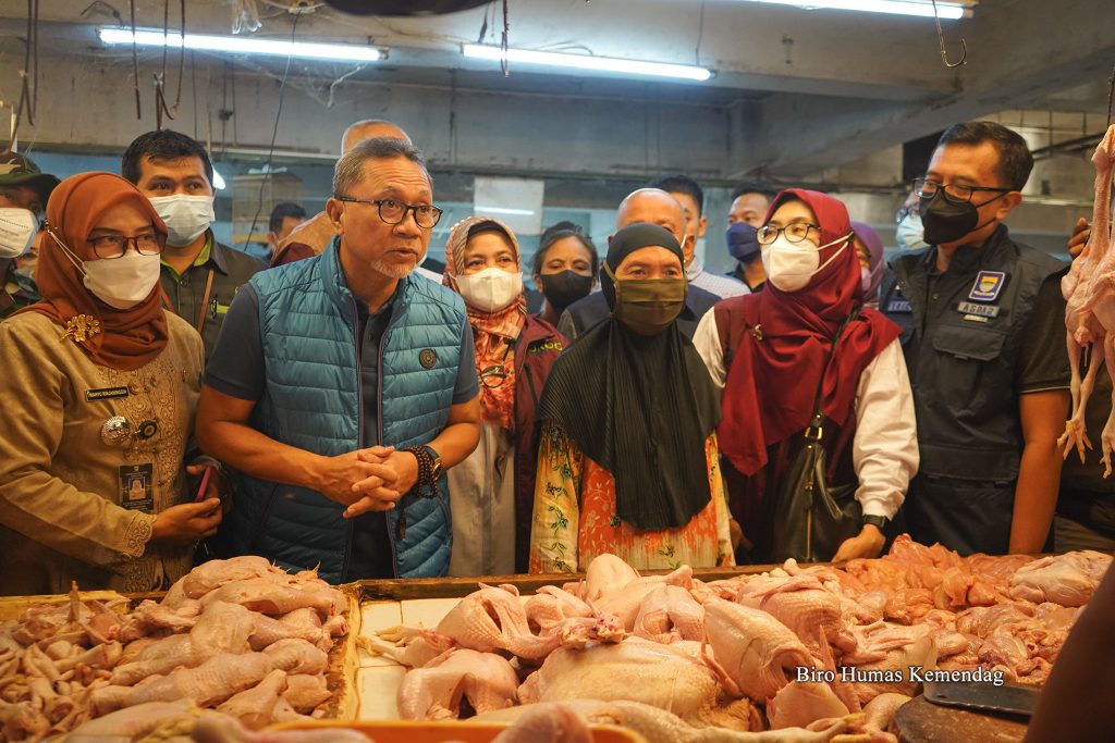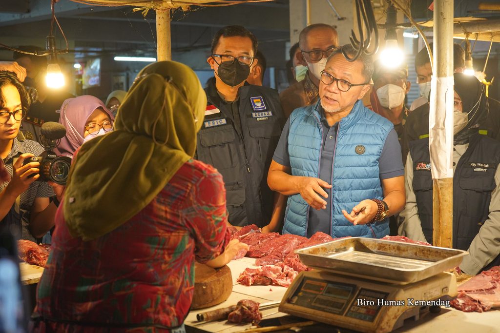 Menteri Perdagangan Zulkifli Hasan kembali melakukan blusukan ke pasar dan bertemu pedagang, mengecek harga minyak goreng dan bahan-bahan pokok di Pasar Kosambi, Bandung, Jawa Barat, Kamis, (23/06/2022).