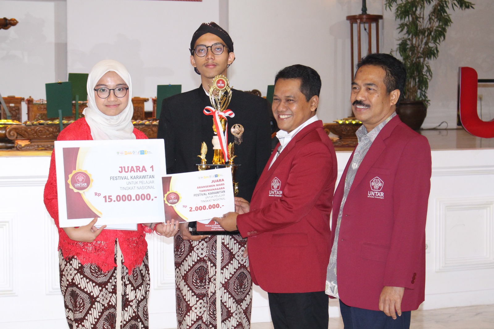 Festival Karawitan ini digelar dalam rangka menyambut HUT Untar ke-64. Ada 8 peserta yang ikut dalam festival ini. Mereka berasal dari sekolah jenjang SMP, SMA/SMK di Jakarta maupun luar Jakarta. Para pelajar tampil menakjubkan memainkan alat music karawitan seperti Demung, Bonang, Gambang dan Kenong.
