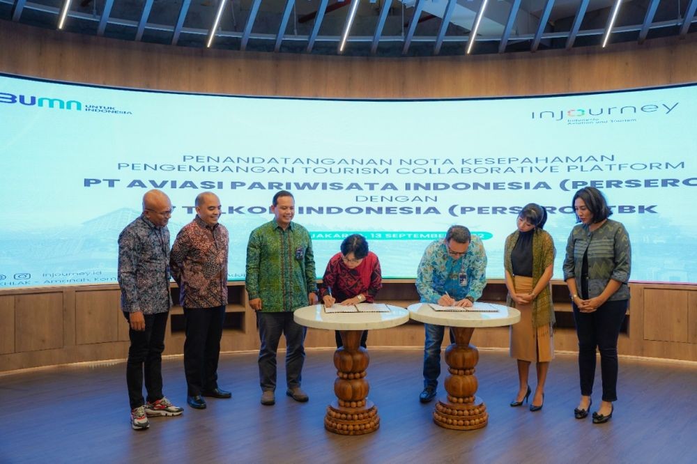 PT Telkom Indonesia (Persero) Tbk atau Telkom dan PT Aviasi Pariwisata Indonesia (Persero) atau Injourney bekerja sama membangkitkan sektor pariwisata Indonesia, salah satunya melalui akselerasi digitalisasi ekosistem pariwisata yang sejalan dengan program pemerintah dalam mempercepat transformasi digital nasional. Upaya ini ditunjukkan melalui penandatanganan nota kesepahaman atau memorandum of understanding antara Injourney dengan Telkom untuk mengembangkan Tourism Collaborative Platform. Penandatanganan dilakukan oleh Direktur SDM dan Digital Injourney Herdy Harman dan Plt Direktur Enterprise & Business Service Telkom FM Venusiana di Kantor Injourney, yang terletak di Gedung Sarinah, Jakarta Pusat.